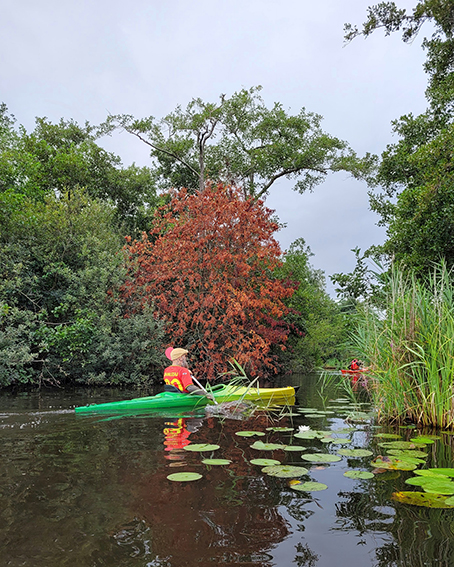 Het stond al een tijdje in de planning; onze goede vriend Paul wilde graag een keer mee met één van onze avonturen en het leek ons ook een uitstekend voornemen! Er liggen namelijk al heel wat jaren vriendschap op onze levenslijn, soms wat uit het oog, maar zeker niet uit onze harten. De derde dag op de Weerribben-Wieden zouden wij met ons drietjes gaan doorbrengen. Wij pakten vroeg in de ochtend onze tenten en tuinstoelen weer in, kajaks op het dak en reden zuidwaarts richting Belt-Schutsloot. Paul had daar voor die dag een kajak gehuurd om samen met ons de natuur in te duiken. Goed bijgekletst, genoten, gelachen én gevaren. Wederom wat doodlopende paadjes ingeslagen en zelfs, tegen onze verwachtingen in, de Topo GPS App moeten aanslingeren. Misschien zit Paul ooit in zijn eigen kajak. Aan de afstand zal het niet liggen. Een dikke 17 km heeft Paul afgelegd in zijn huurkano inclusief een stevige zijwind op de Belterwijde. En dat, zoals Raymond en ik het wel eens noemen, in zo'n stugge onzinkbare Kliko waar je zelfs tijdens het varen nog een driedubbele Rittberger in zou kunnen uitvoeren. Het waren drie prachtige dagen, tot volgend jaar!