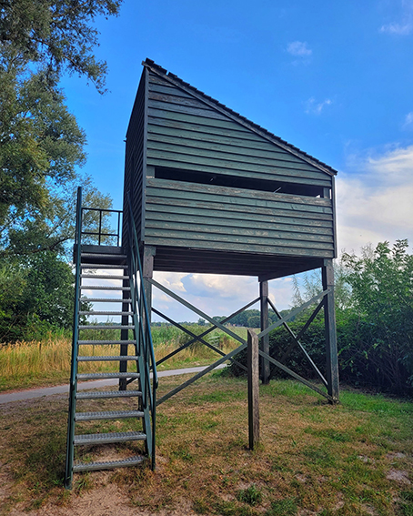 Maar goed, nu dus voor de derde keer afgereisd richting Blokzijl, en wij wisten nu al zeker dat wij er ook 3 dagen zouden kunnen gaan varen gezien de weersvoorspellingen. Eenmaal aangekomen ons kampementje opgezet incl. de fijne tuinstoelen én tafeltje. Even genieten van het uitzicht, wij zaten pal aan het water, en vervolgens omkleden en het water op. Het was een behoorlijk warme 30+ graden dag. Via Scoutingtools diverse kaarten van het gebied uitgeprint én gelamineerd, zodat wij al snel een idee hadden welke richting wij op zouden gaan varen. De eerste dag (middag) richting het Noorden, langs camping Muggebeet richting Kalenberg. Zelfs nog wat stukjes kunnen pakken welke wij nog niet eerder hadden gevaren. Onderweg nog een leuke uitkijktoren tegen gekomen waardoor wij gelijk een goed beeld kregen waar wij ons precies bevonden en hoever het ongeveer nog was. Na zo'n 17 km te hebben gevaren kwamen wij weer aan bij de camping. Tijd voor het avondeten.