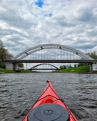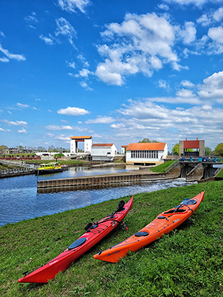 Om 07.30u afgesproken bij het botenhuis om daar onze beide kajaks op de auto van Marcel te laden. Aangezien Marcel zelf in de binnenstad woont beschikt hij over een parkeervergunning. Heel erg handig want waar daar de Berkel eindigd in de IJssel, precies voor de sluis, lieten wij onze boten in het water glijden. Het was een heerlijke zonnige ochtend dus shirts met lange mouwen én het zwemvest gaf voldoende warmte, zelfs om 08.00 uur 's ochtends. We zouden wel zien hoe ver we zouden komen deze dag, Almen, misschien nog een stukje verder?